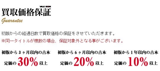 初版から3ヶ月以内の古本は定価の30パーセント以上の査定価格保証